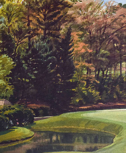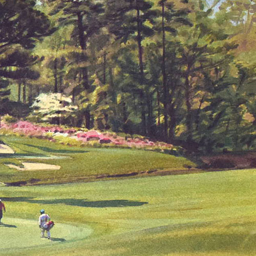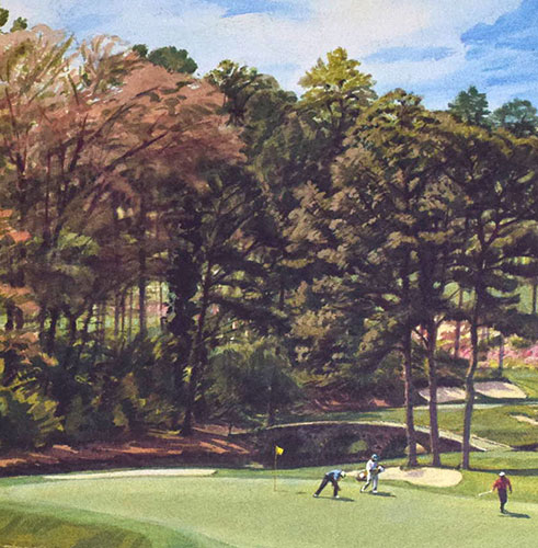 He has painted some of the finest golf courses in the world and his paintings hang in some of the leading golf collections including the USGA museum and St Andrews, as well as many clubs and private collections both sides of the Atlantic.