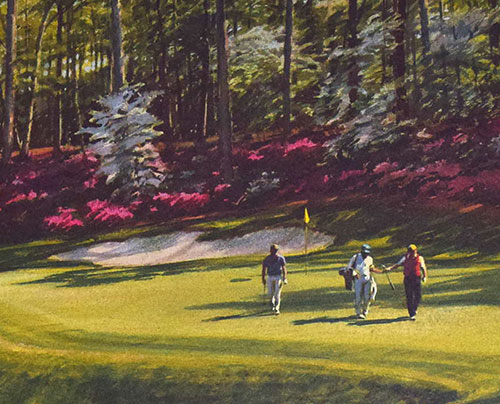 He has painted some of the finest golf courses in the world and his paintings hang in some of the leading golf collections including the USGA museum and St Andrews, as well as many clubs and private collections both sides of the Atlantic.