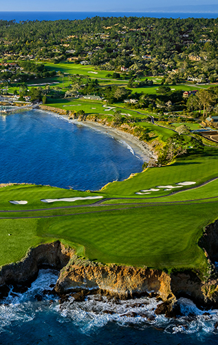 This breathtaking aerial shot of Pebble Beach Golf Links shows the sixth, seventh and tee shot of the eighth holes on Arrowhead Point.