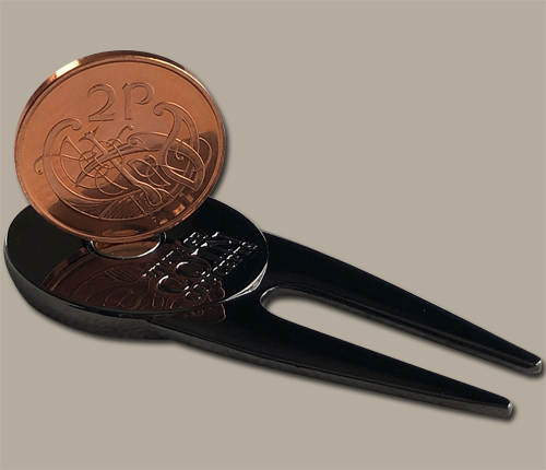 Irish Divot Repair Tool & Ball Marker with Irish Pence Coin