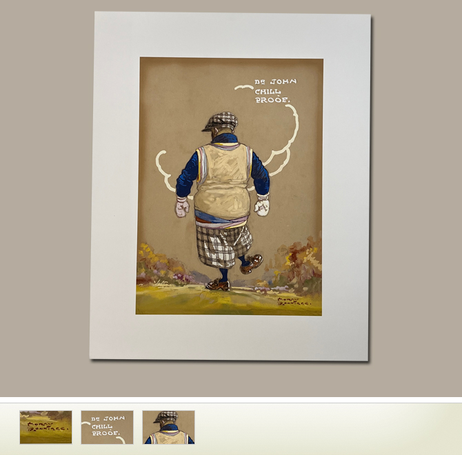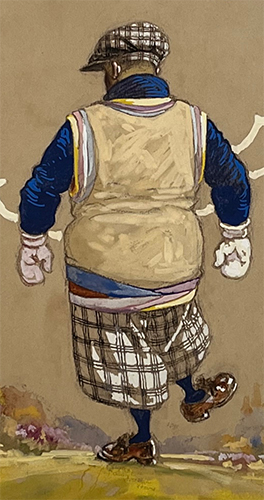 Harry Rountree (1878-1950) was a prolific illustrator working in England around the turn of the 19/20th centuries. He came from New Zealand in 1901 to London, when he was 23 years old. After struggling for 2 years, by 1903 Rountree was illustrating books for the editor of Little Folks, writing and illustrating his own books, and in demand by nearly every publisher in London. In 1910 Rountree prvoided the 64 color illustrations for Bernard Darwin's famous book The Golf Courses of the British Isles.