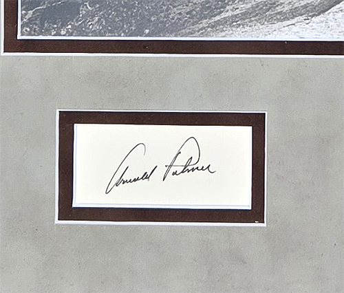 This historical piece features an 11" x14" photo of this event as well as a bold and beautiful Arnold Palmer autograph.