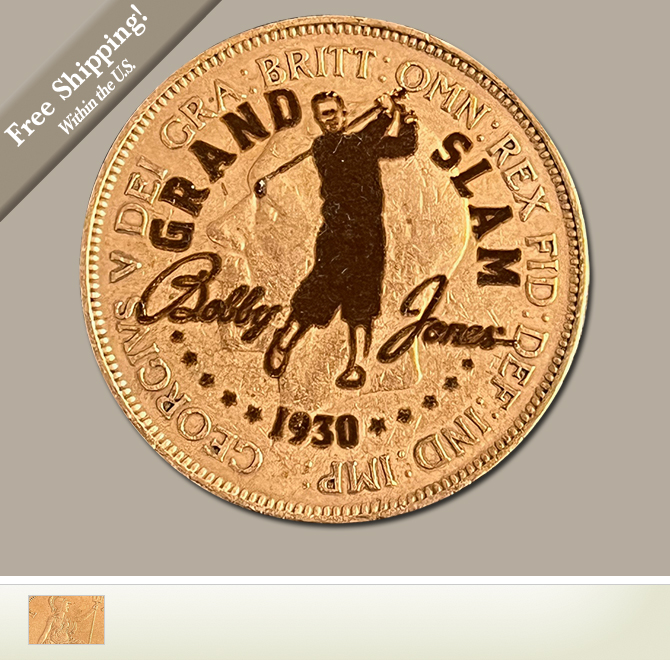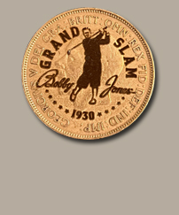 This stunning ball marker commemorates Bobby Jones' 1930 Impregnable Quadrilateral with a real 1930 British Farthing and has been laser engraved with the Bobby Jones Grand Slam Centennial logo.
