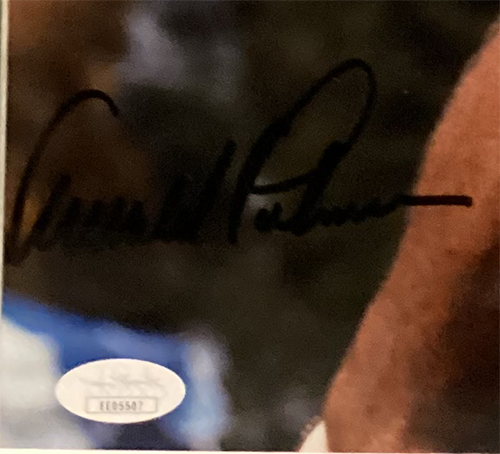 This beautifully autographed 8"x10" photo by Palmer is matted and ready to frame!