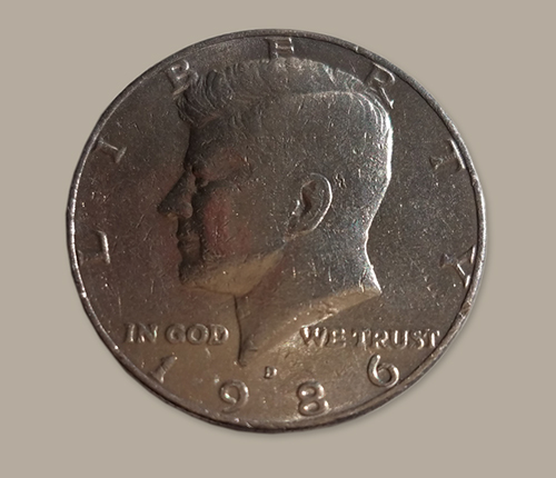 To commemorate this historic accomplishment we have created a ball marker using a 1986 Kennedy half dollar. Using the latest printing technology we have captured this famous image in golf history on one side of the half dollar.